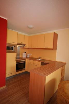 Im offenen Wohnbereich finden Sie eine mit allen technischen Geräten ausgestattete moderne Küche (Spülmaschine, Mikrowelle, Toaster, Wasserkocher, Kaffeemaschine, Senseo-Kaffeemaschine, Mixer, Flaschenwärmer für Säuglinge) und für eine Großfamilie ausreichendes Küchen- und Eßgeschirr.