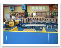 Für die Älteren gibt es eine schöne Bowlingbahn, dabei eine Cafeteria mit günstigen kleinen Gerichten, so dass die Küche auch mal kalt bleiben kann.